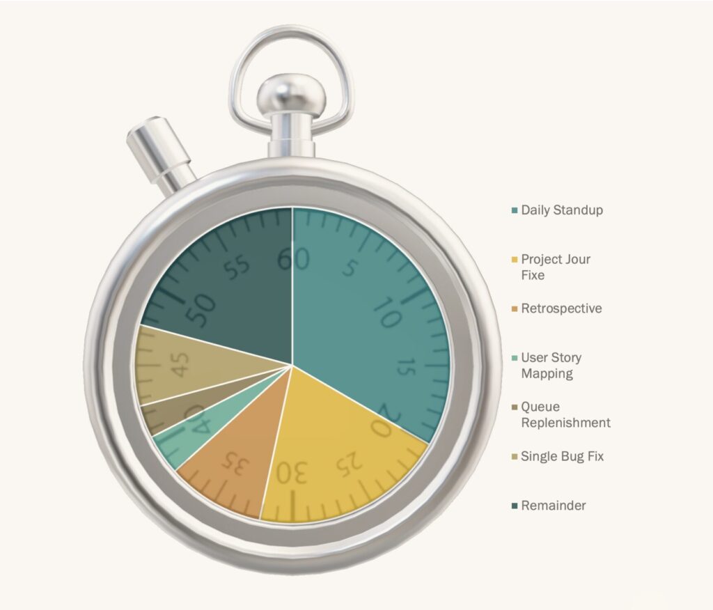| Retrospective | 2 hours, monthly, i.e. three retrospectives per quarter | 6 minutes |